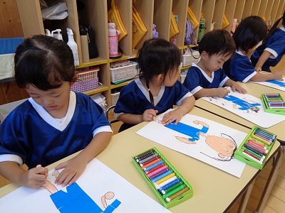 運動会に向けて、ホールで遊戯の練習をしました。